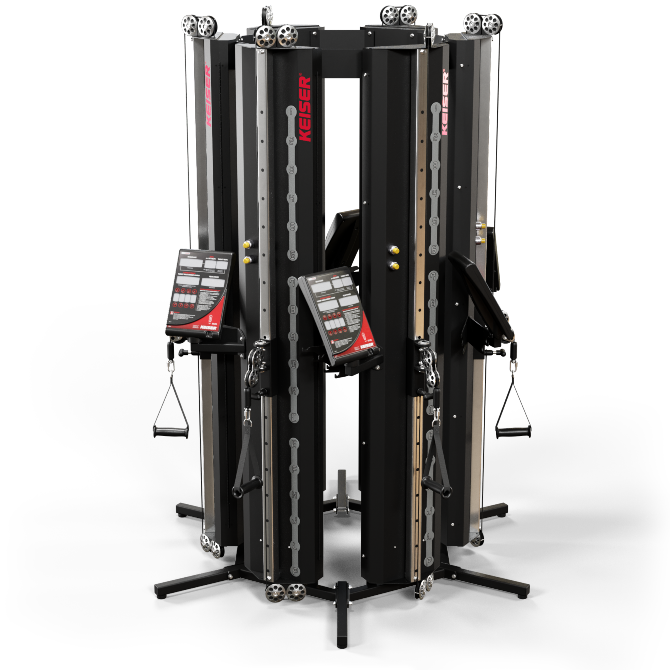 The Six Pack came about because of requests to configure our Performance Trainers around a column without having to attach the units to the column. The Six Pack turned out to be the perfect solution. It doesn’t have to go around a column. It’s an ideal way to have six Performance Trainers grouped in the middle of the floor and saves having to mount the Performance Trainers on a wall. The maximum diameter of column the Six-Pack will fit around is 29” (737 mm). If your column, regardless of shape, will fit inside a 29” (737 mm) diameter circle, our standard Six-Pack configuration will fit around it. For columns larger than 29” (737 mm), contact Keiser at +1 559 256 8000 or your Keiser Regional Sales Manager for a quote on a special configuration.