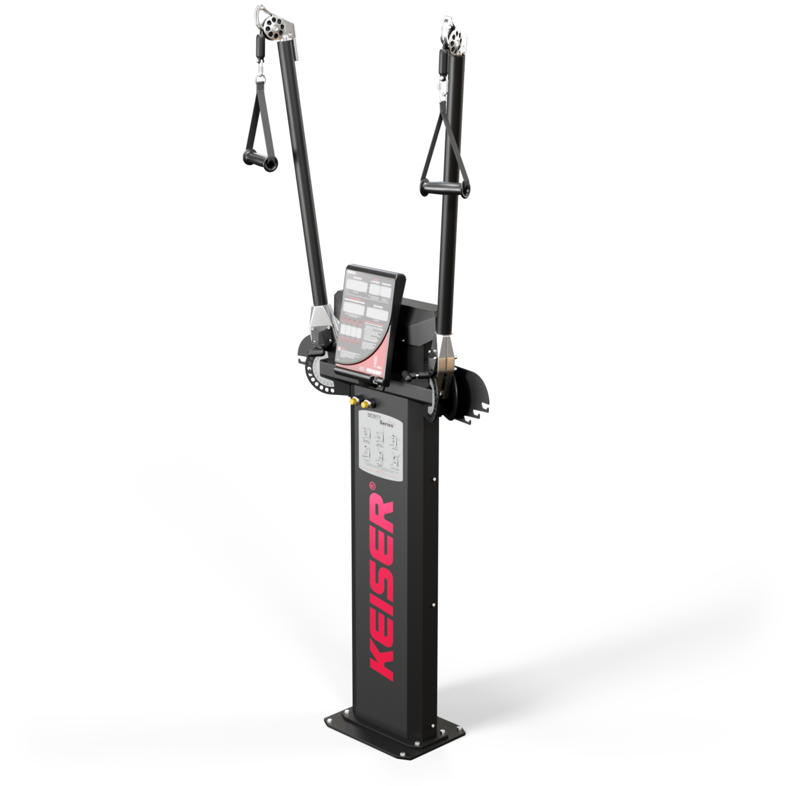 Just because you can pull a cable in a variety of directions doesn’t make it functional. It’s pulling at the speed we perform that makes it truly functional. We designed this machine to be faster than the fastest human being, so we could properly train any movement, at any speed, in any direction. To truly understand what this all means, you’ve got to try it. Once you do, you will understand true FUNCTION. The Functional Trainer MUST be purchased with either a Free-Standing Base (Model 3025) or our Floor Mount Base Plate (Model 3021) or our Extended Base Plate (Model 300836) that raises the FT up 12 inches (305 mm) for basketball teams. (The Floor Mount and Extended Base Plates must be securely anchored to a concrete floor per instruction.)